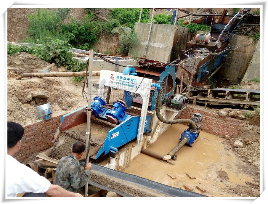 隆中重工洗沙機廠家的洗砂回收一體機在三門峽靈寶安裝調試完畢,檢查無誤,正式投入生產。從視頻中可以看到,洗砂回收一體機作為濕法制砂生產線的.后一道程序,主要作用是水洗砂、