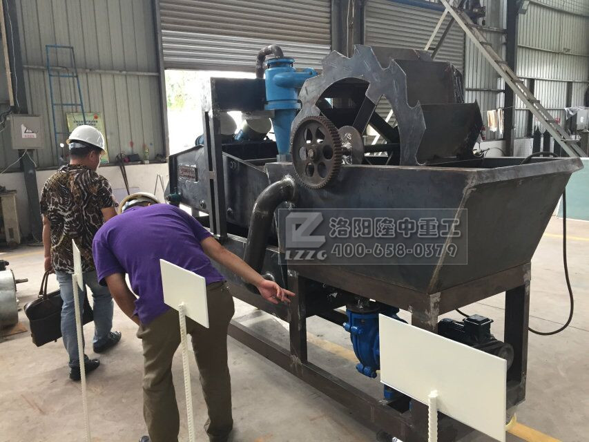 隆中重工洗沙機廠家的技術人員目前已制作出了國內.小型的洗砂回收一體機,吸引各大砂石廠老板前來參觀。
